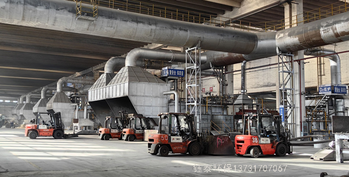 熔爐的煙氣通過集煙罩收集(此時的煙氣溫度在250度-300度左右)通過支煙管并入主煙道,送至水冷散熱器,經過水冷散熱器把煙氣降溫至80-100度左右而進入布袋除塵器(耐高溫布袋的極限溫度為250度,耐受時間極限為30分鐘)由除塵器分室進口閥門、除塵器箱體、導流板、濾袋組件、離線停風閥、脈沖清灰噴吹系統、灰斗設備(含清堵空氣炮)、保護系統(煙氣旁路)、供氣及檢測系統以及控制系統組成。
